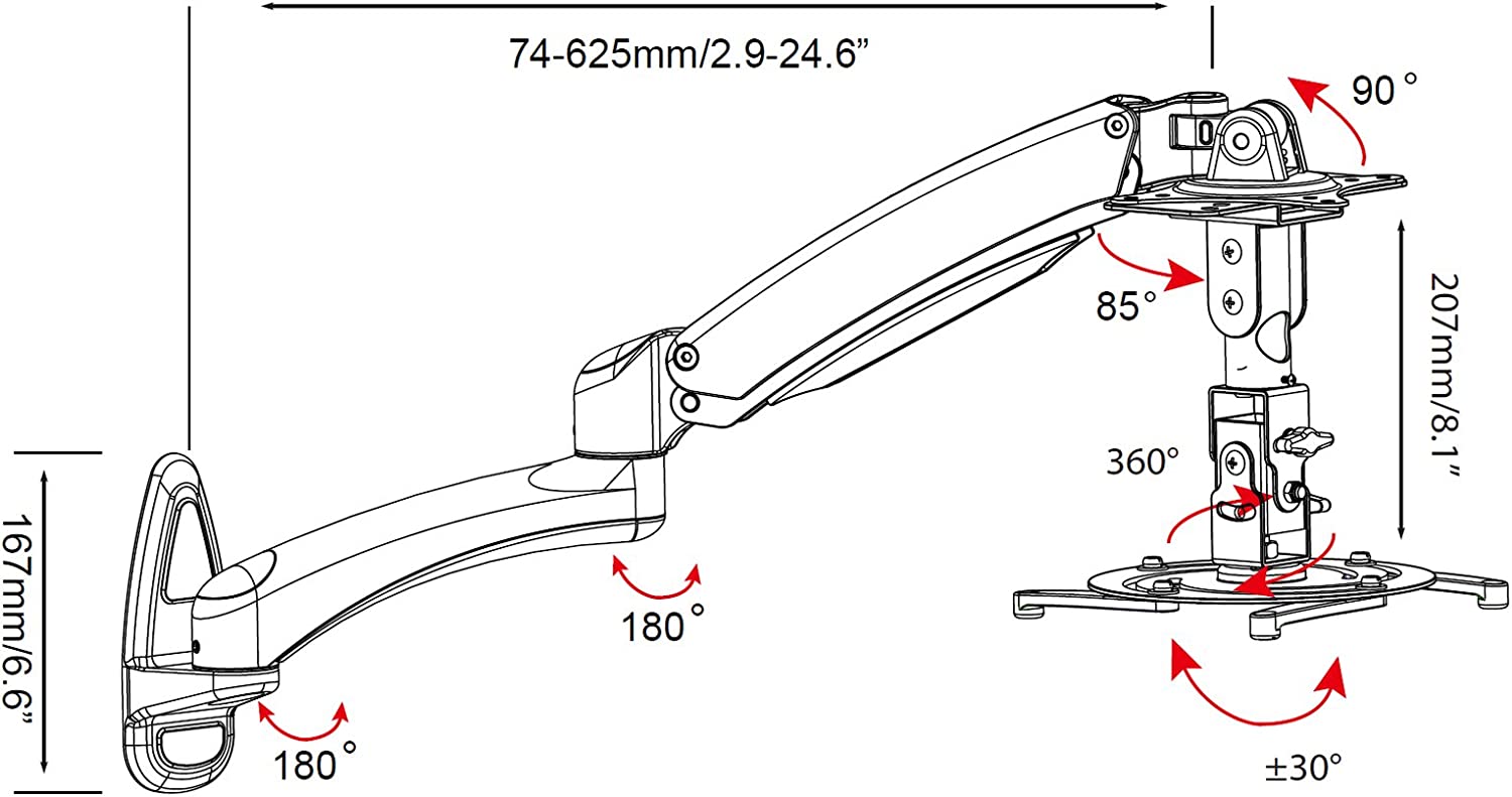 Mithilfe einer Einstellschraube, kann die Tragkraft auf das Gewicht des Beamers eingestellt werden. Nach Einstellung der Gelenkarme ist ein flexibles und stufenloses Ausrichten ohne erneutes Schrauben möglich. Der Arm arretiert an der gewünschten Position.