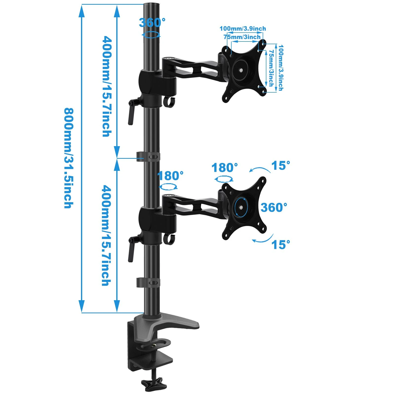 Der VESA-Halterungskopf in der Neigung verstellbar und kann ebenfalls um 360° rotiert werden. Durch Drehen des Monitors kann zum Betrachten von Fotos ins Hochformat gewechselt werden.