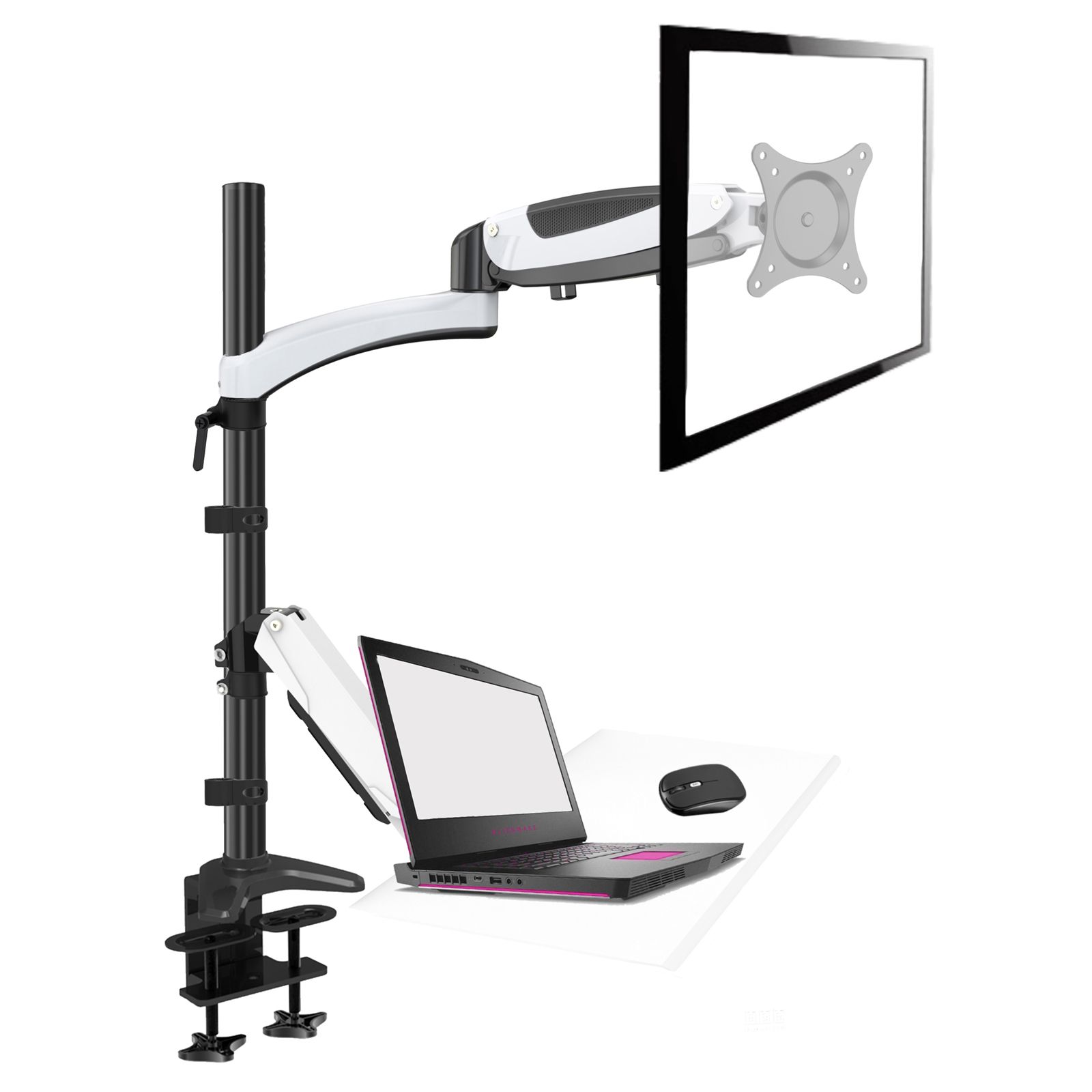 Tischhalterung mit vollbeweglichem Gasdruckfedergelenk für maximale Flexibilität und 2-Loch-System für eine stabile Befestigung