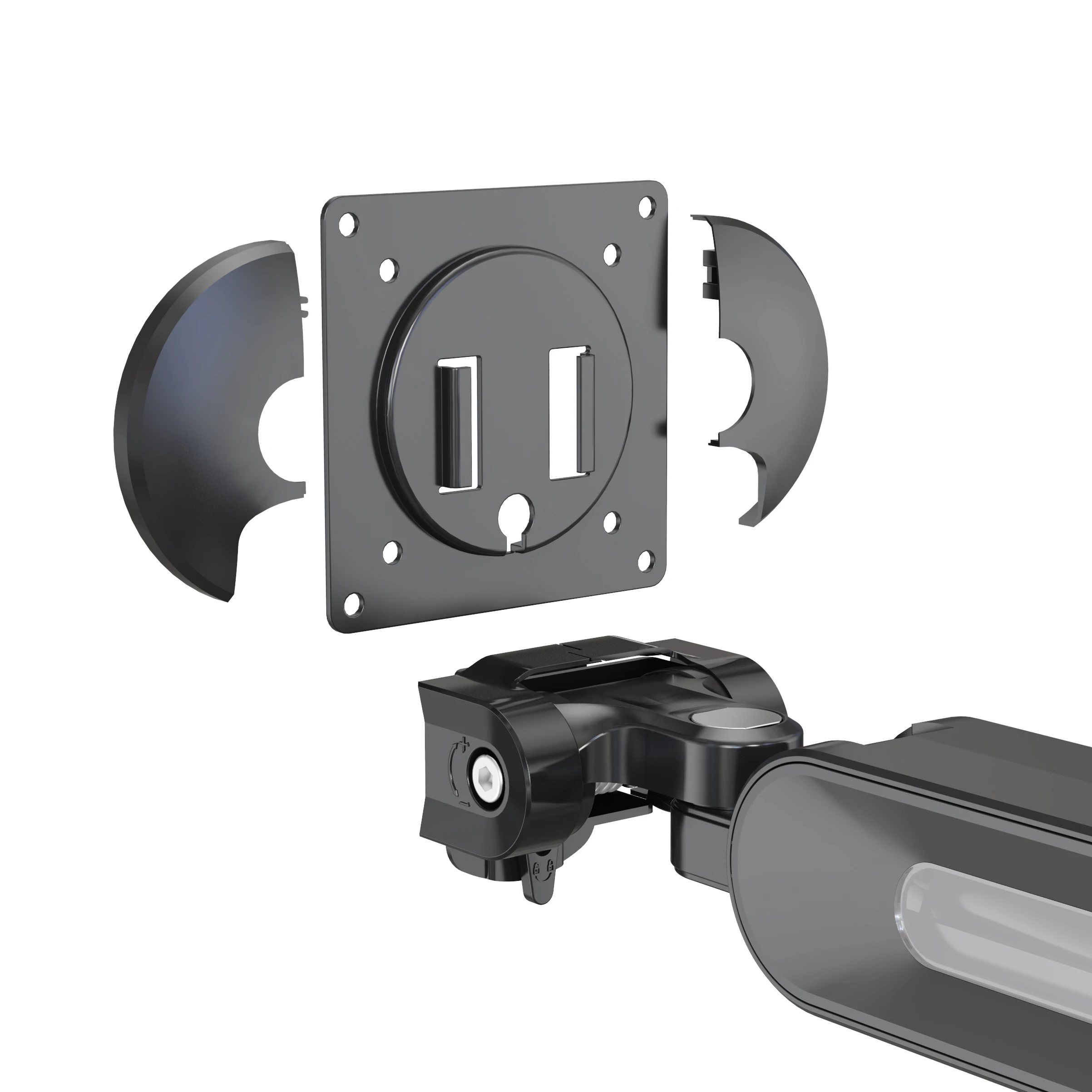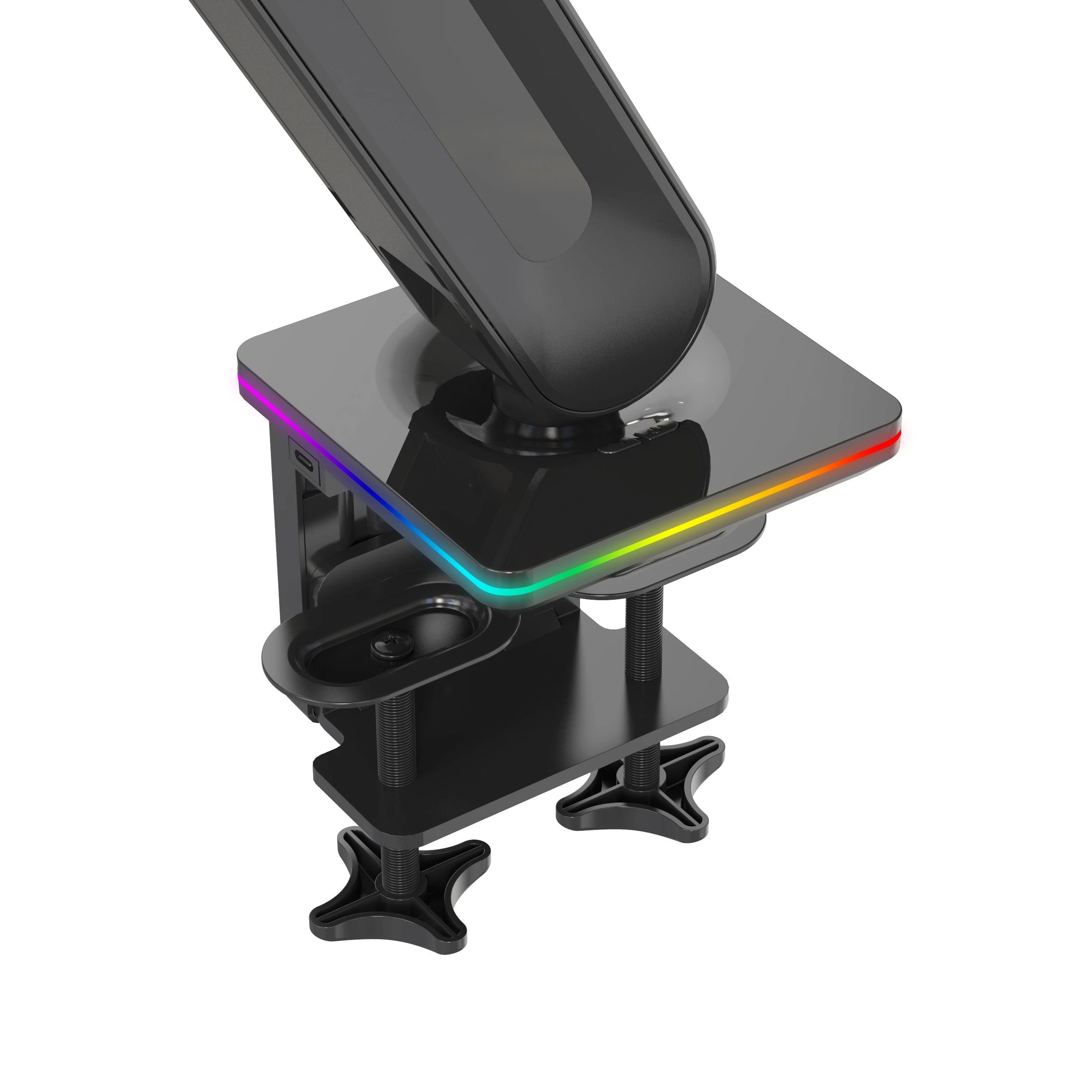 Innovativer Gasfeder-Monitorarm mit LED-Beleuchtung und USB-Anschlüssen