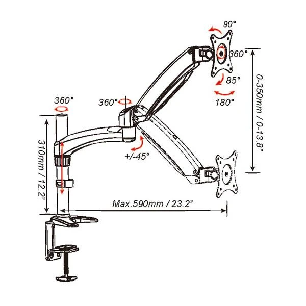 • Tischhalterung mit vollbeweglichem Druckfederarmen für einfache Neig- und Drehbarkeit des Monitors