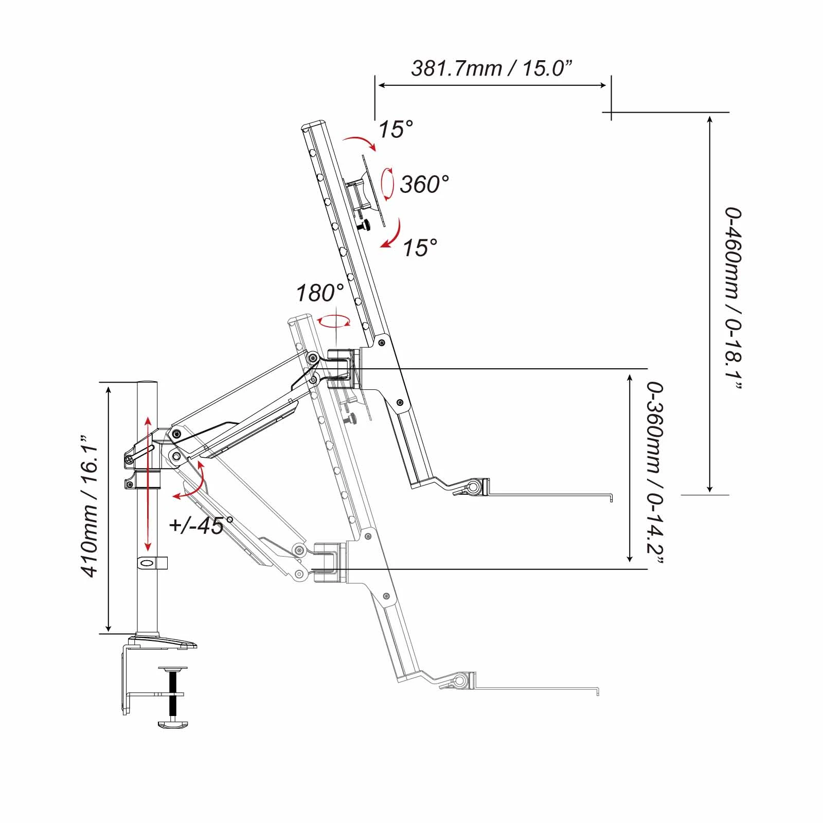 • Belastbarkeit: bis zu 8 kg je Monitor – 360° drehbar, 180° schwenkbar – höhenverstellbar und +15° /-15° neigbar
