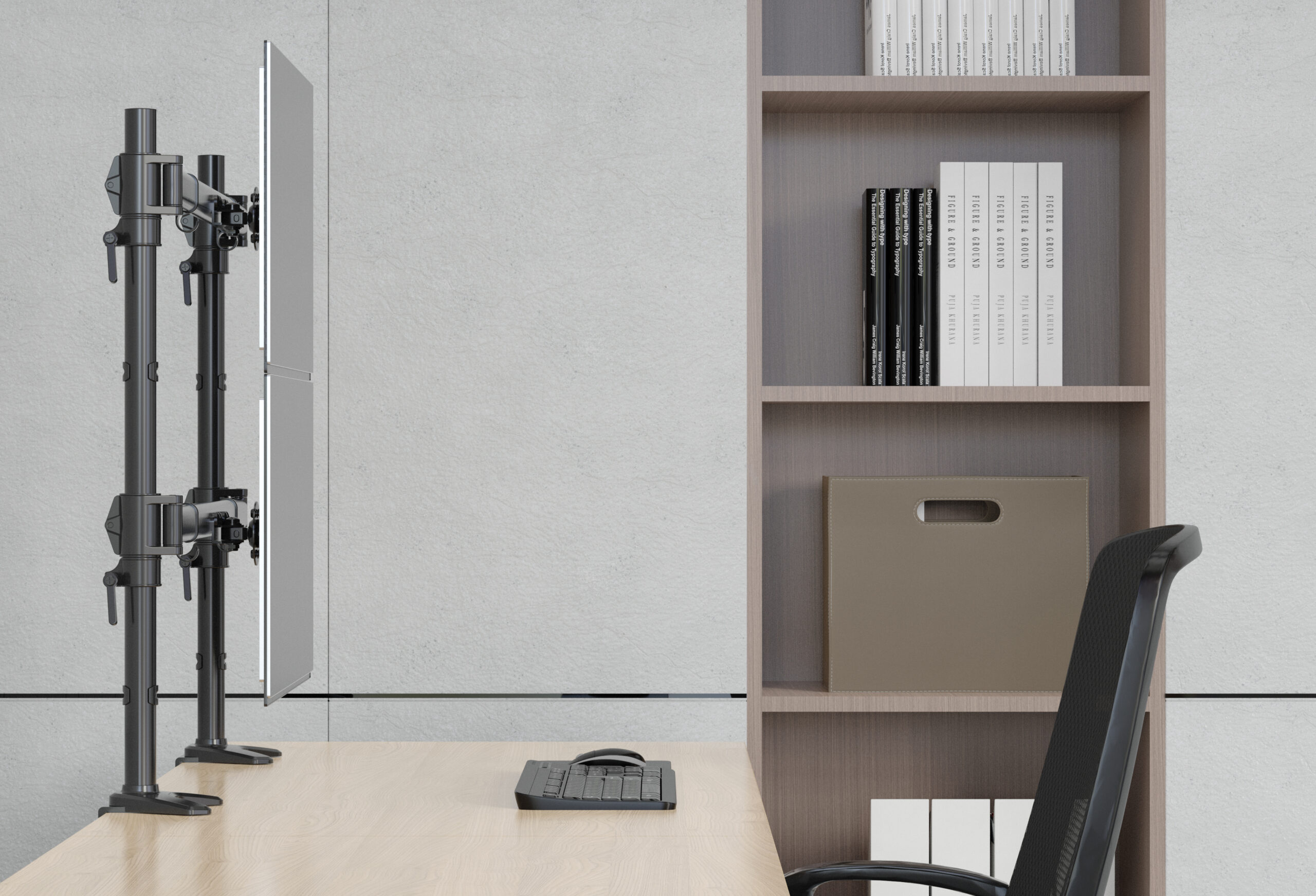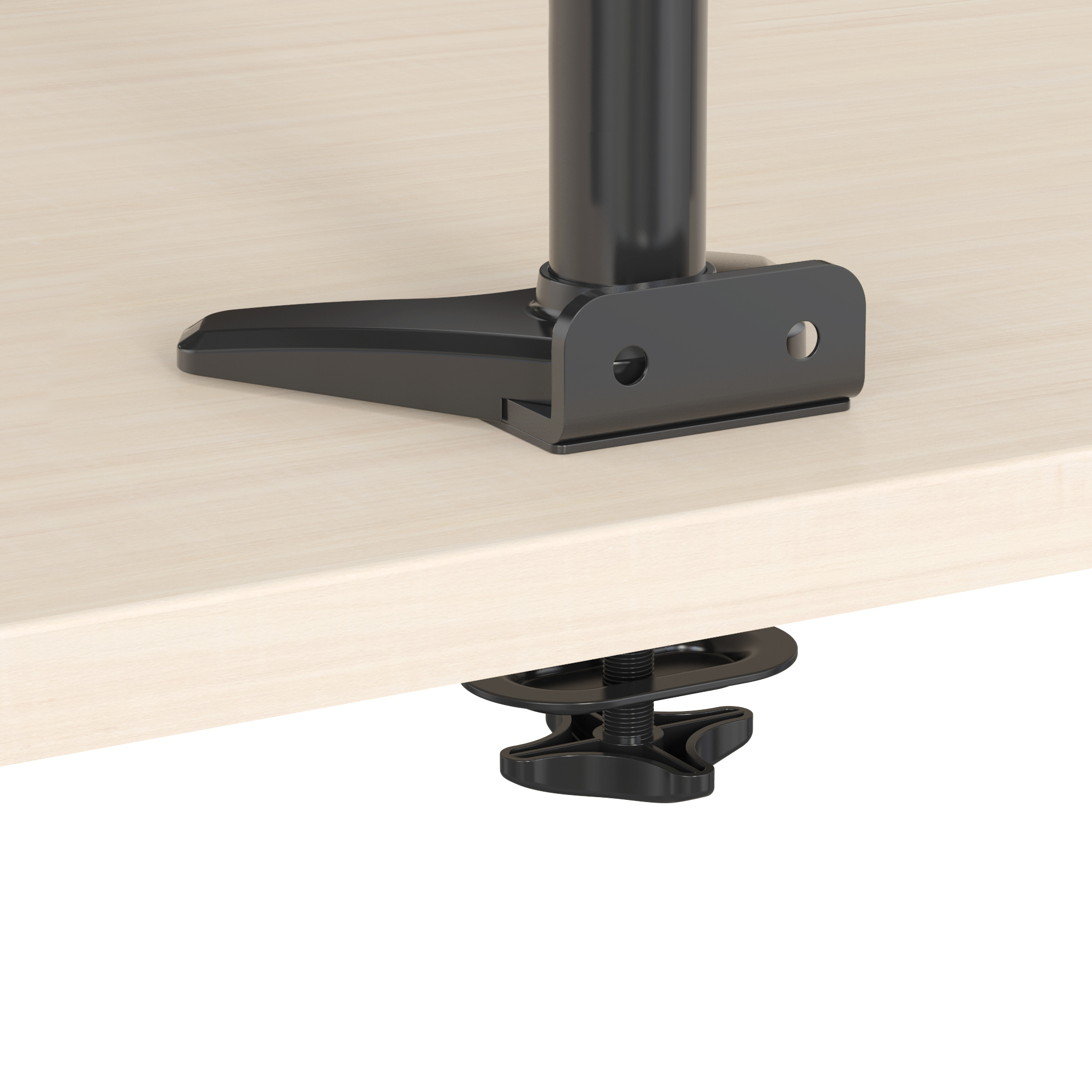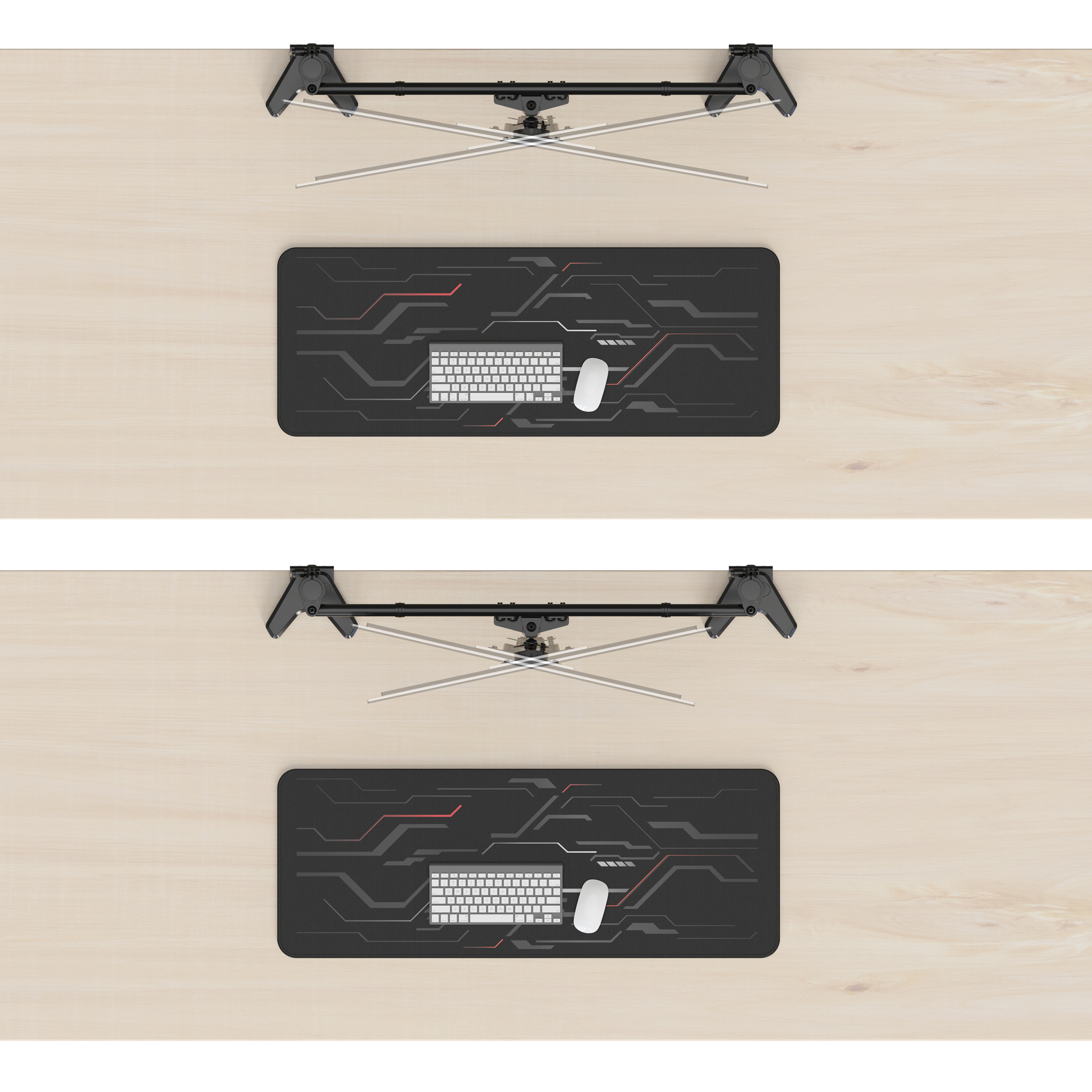 Die Quick-Release-Funktion ermöglicht eine einfache Montage der Monitore, während integrierte Kabelhalter und abnehmbare Clips entlang der Arme und der Mittelstange für eine saubere Kabelführung sorgen. Das Ergebnis: ein aufgeräumter und professioneller Arbeitsplatz.