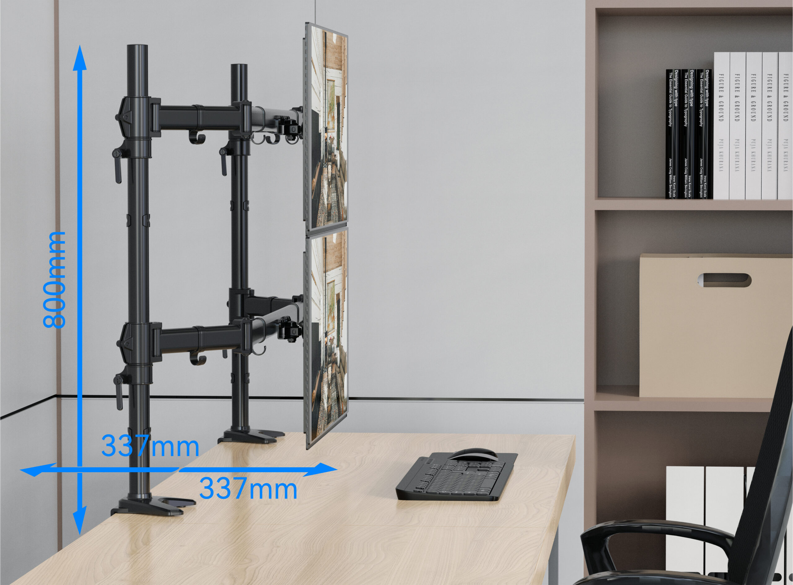 Das schlichte, moderne Design der Halterung lässt sich problemlos in jede Innenarchitektur integrieren, sowohl im Home-Office als auch in Unternehmensumgebungen. Hochwertige Materialien und präzise Verarbeitung garantieren Langlebigkeit und Stabilität.