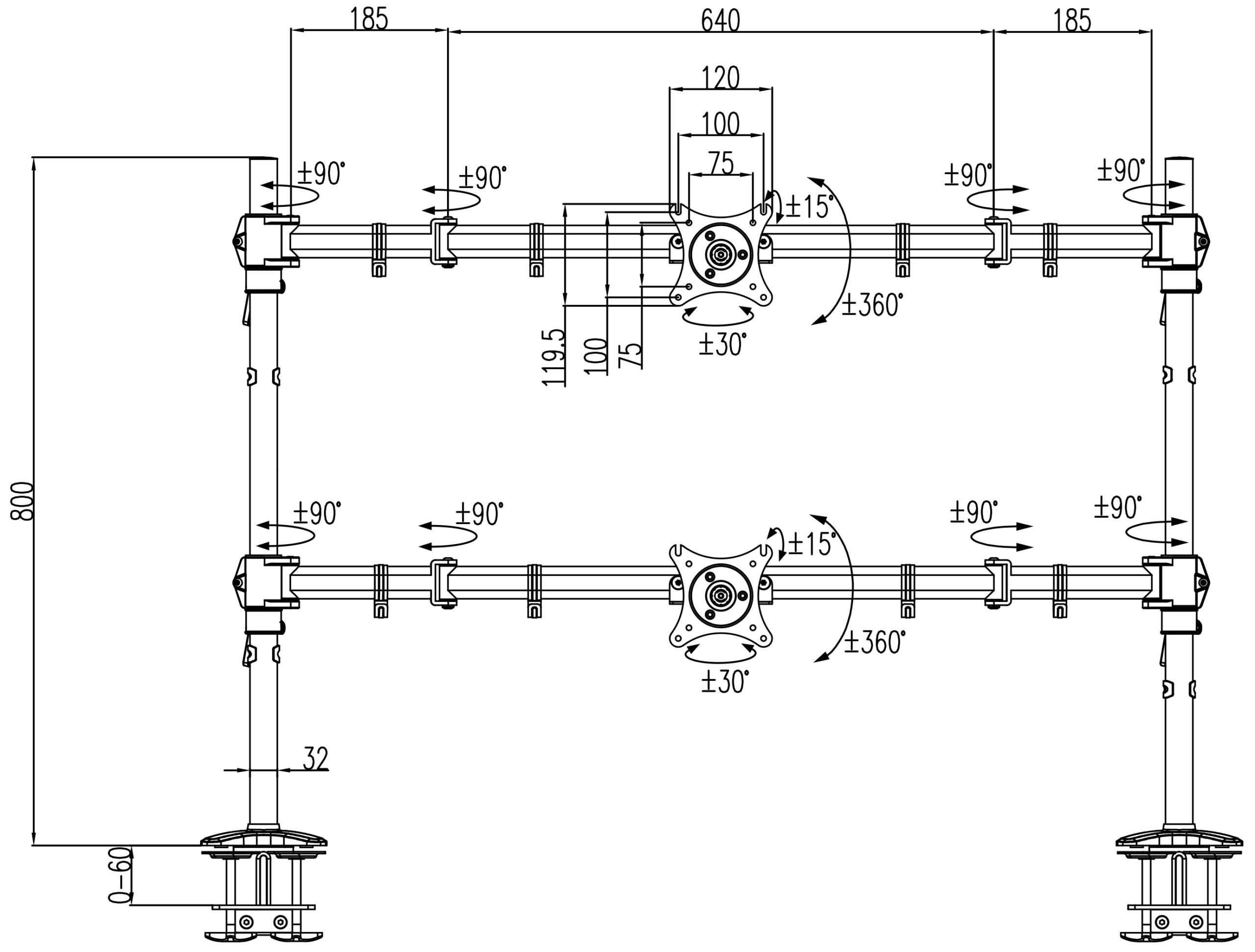 MS622C-80N Doppelmonitor-Tischhalterung ist die ideale Lösung zur Steigerung der Arbeitseffizienz und Optimierung des Schreibtischplatzes. Diese Halterung ermöglicht die vertikale Anordnung von zwei Monitoren mit einer maximalen Breite von 101 cm und ist somit für verschiedene Büroumgebungen geeignet. Jede Halterung bietet stabile Unterstützung für Monitore von 15 bis 34 Zoll und einem maximalen Gewicht von 15 kg, was hohe Stabilität und Sicherheit gewährleistet.